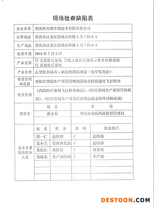 1、對重慶埃夫朗生物技術(shù)有限責(zé)任公司飛行檢查情況