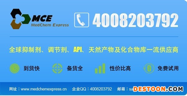 公司介紹:MedChemExpress(MCE)專注于各種抑制劑、激動劑、API及化合物庫,總部位于美國新澤西,分別在瑞典和上海設(shè)有歐洲區(qū)子公司和亞洲區(qū)總代理,營銷網(wǎng)點遍及全球20多個國家地區(qū)。MCE經(jīng)過多年努力已成為全球生物活性小分子領(lǐng)域的一流供應(yīng)商, 產(chǎn)品涵蓋癌癥、神經(jīng)科學(xué)、抗感染、表觀遺傳學(xué)等20個熱門研究領(lǐng)域,PI3K、MAPK等近千個細分靶點,超過4000個活性小分子化合物現(xiàn)貨,以及GPCR、API、離子通道等超過20種不同類型的化合物庫,同時提供從毫克到千克的專業(yè)定制合成服務(wù)。