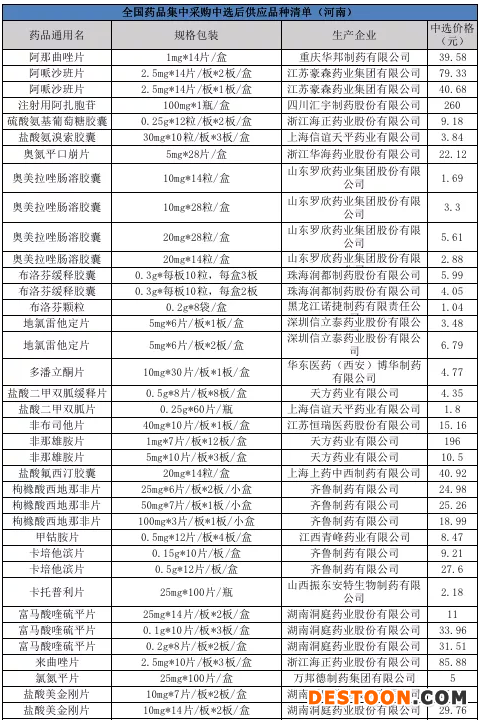 執(zhí)行的藥品范圍包括國(guó)家聯(lián)采辦公布的《全國(guó)藥品集中采購(gòu)中選后供應(yīng)品種清單(河南)》中明確的55個(gè)中選藥品及其供應(yīng)的85個(gè)品規(guī)。具體產(chǎn)品如下: