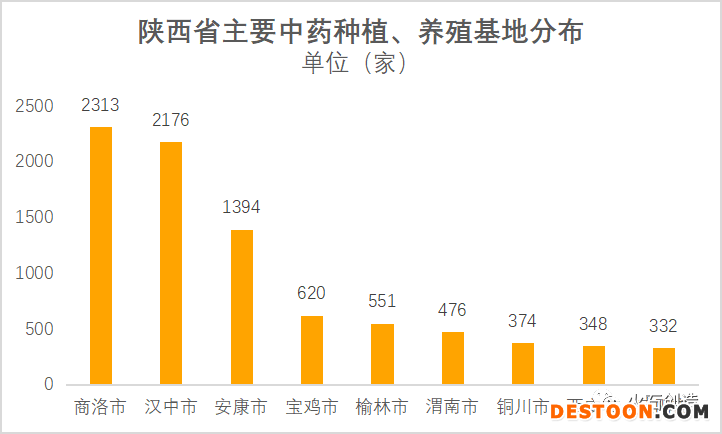 中藥種植養(yǎng)殖方面,陜西中藥材種植歷史悠久、品種繁多、品質(zhì)優(yōu)良。目前主產(chǎn)豬苓、杜仲、柴胡、黃精、林麝、附子、厚樸、元胡、丹參、連翹、五味子、桔梗等藥材,已建成多家中藥材GAP基地并獲得國家地理標志產(chǎn)品和有機認證。根據(jù)火石創(chuàng)造產(chǎn)業(yè)大數(shù)據(jù),陜西省擁有中藥種植、養(yǎng)殖相關(guān)公司和基地8788家,其中商洛市、漢中市和安康市為中藥種植大市,種植、養(yǎng)殖基地和相關(guān)公司超過1000家。