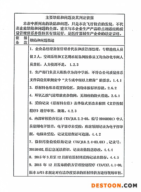 天新福(北京)醫(yī)療器械股份有限公司的以下行為(見下表)不符合醫(yī)療器械生產(chǎn)質(zhì)量管理規(guī)范相關(guān)要求,質(zhì)量管理體系存在缺陷?,F(xiàn)由北京市食品藥品監(jiān)督管理局責(zé)成天新福(北京)醫(yī)療器械股份有限公司對上述缺陷限期整改。