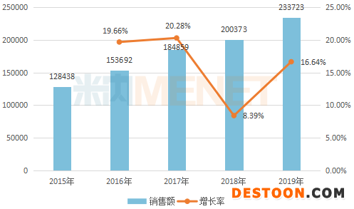 圖:2015-2019年中國(guó)公立醫(yī)療機(jī)構(gòu)終端鹽酸溴己新銷售情況(單位:萬元)