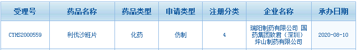 8月12日訊 日前,CDE官網(wǎng)顯示,瑞陽制藥、國藥集團(tuán)致君(深圳)坪山制藥的利伐沙班片以仿制4類提交上市申請(qǐng)獲得受理。米內(nèi)網(wǎng)數(shù)據(jù)顯示,近年利伐沙班片在中國公立醫(yī)療機(jī)構(gòu)終端銷售額快速增長,2019年突破超過25億元,同比增長41.52%。