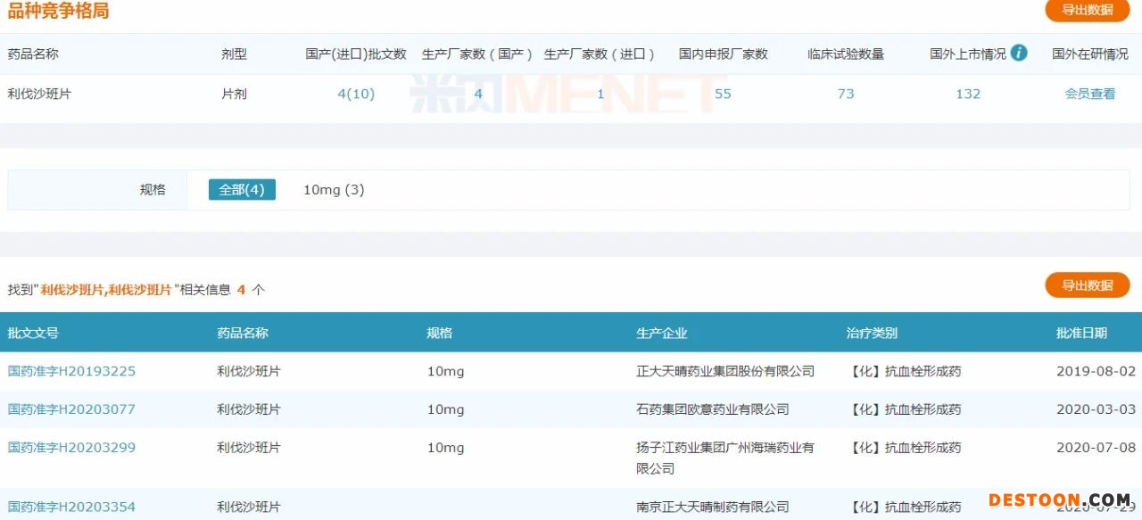 資料顯示,利伐沙班片為一種口服直接抑制Xa因子的抗凝藥,具有臨床療效好,給藥方便,無需調(diào)整劑量及常規(guī)監(jiān)測(cè)等優(yōu)點(diǎn),為血栓性疾病的防治提供了另一用藥選擇。米內(nèi)網(wǎng)數(shù)據(jù)顯示,近年利伐沙班片在中國城市公立醫(yī)院、縣級(jí)公立醫(yī)院、城市社區(qū)中心以及鄉(xiāng)鎮(zhèn)衛(wèi)生院(簡(jiǎn)稱中國公立醫(yī)療機(jī)構(gòu))終端銷售額快速增長,2019年突破25億元,同比增長41.52%,生產(chǎn)廠家一欄顯示,僅拜耳一家在售。