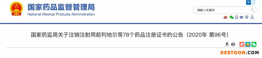 9月10日訊 9月8日下午,國家藥監(jiān)局發(fā)布《關(guān)于注銷注射用前列地爾等78個(gè)藥品注冊(cè)證書的公告》(2020年第96號(hào))。