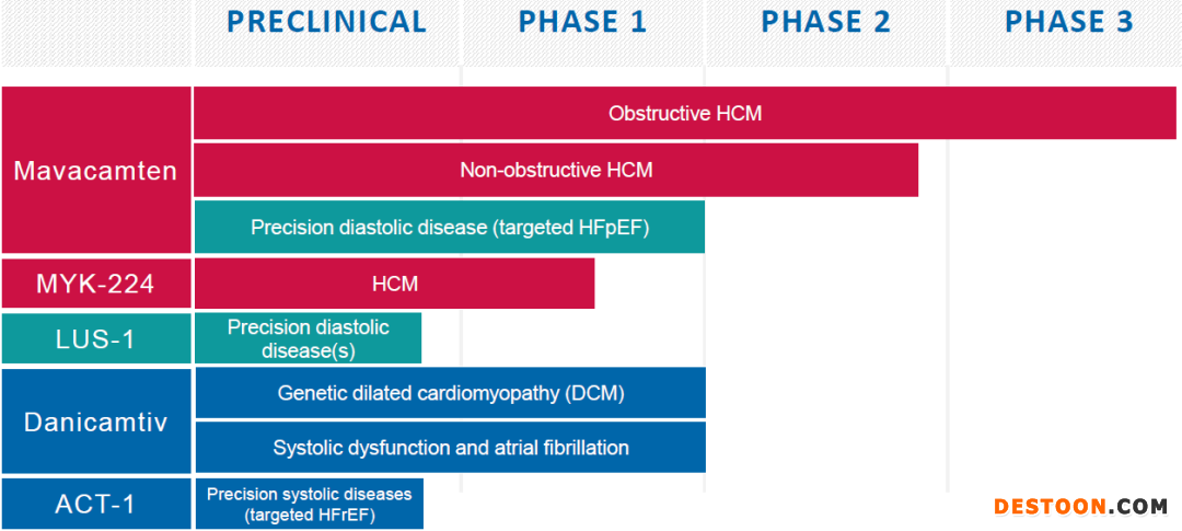 Mavacamten是一類新的直接肌球蛋白抑制劑(myosininhibitor)的首個候選藥物,它針對過度收縮和松弛受損、心肌能量和順應(yīng)性,旨在治療肥厚性心肌?。℉CM,hypertrophic cardiomyopathy)。MyoKardia已經(jīng)將mavacamten推進至多項后期臨床研究,觀察其治療梗阻性和非梗阻性HCM的潛力。