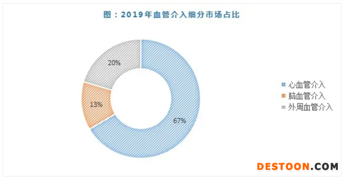 血管介入三大細(xì)分市場中,心血管介入一直占據(jù)最大的市場份額,但隨著醫(yī)療技術(shù)的發(fā)展,市場格局有了新的變化趨勢,腦血管介入和外周血管介入市場份額逐步提升,心血管介入占比下降。