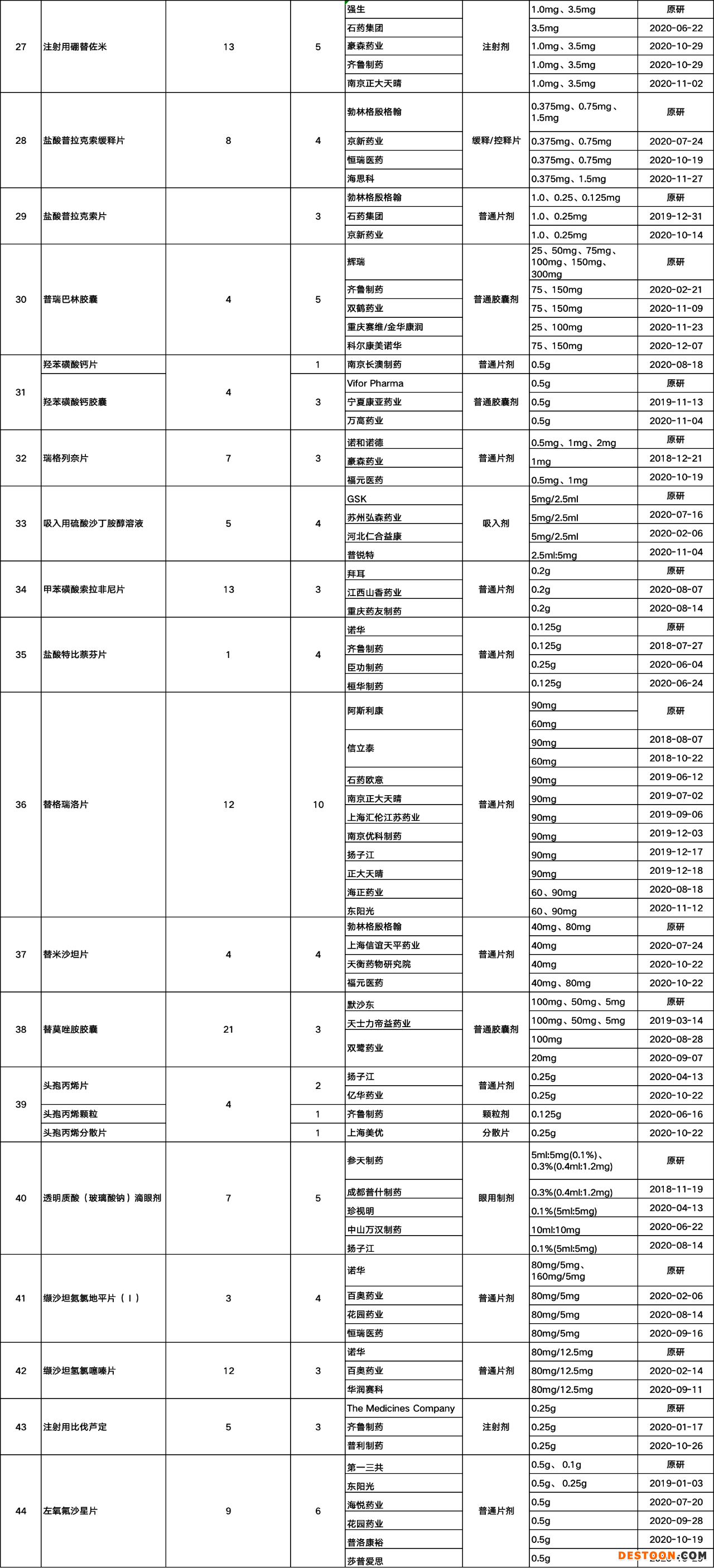 與此同時(shí),石藥也有6個(gè)品種進(jìn)入,分別是布洛芬片、鹽酸度洛西汀腸溶膠囊、諾氟沙星片、注射用硼替佐米、鹽酸普拉克索片、替格瑞洛片。接下來的正大天晴、豪森、東陽(yáng)光、科倫等,涉及品種分別為6、4、3、3。