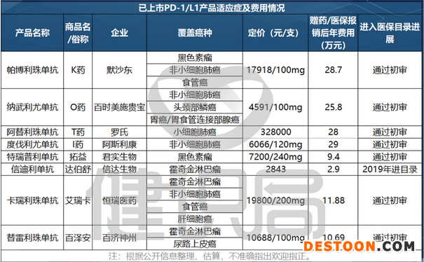 從國(guó)家醫(yī)保局9月份發(fā)布的初審名單看,目前除信達(dá)的“達(dá)伯舒”外的7個(gè)已上市PD-1/L1都有志于爭(zhēng)奪市場(chǎng)。
