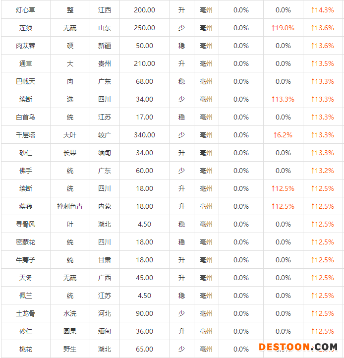 據(jù)中藥材天地網(wǎng)分析,至少在4月份,國內(nèi)中藥材價格仍將面臨極大上漲壓力。如果再出現(xiàn)極端“倒春寒”等天氣因素,則相關(guān)果實子仁類品種不排除會出現(xiàn)暴漲。