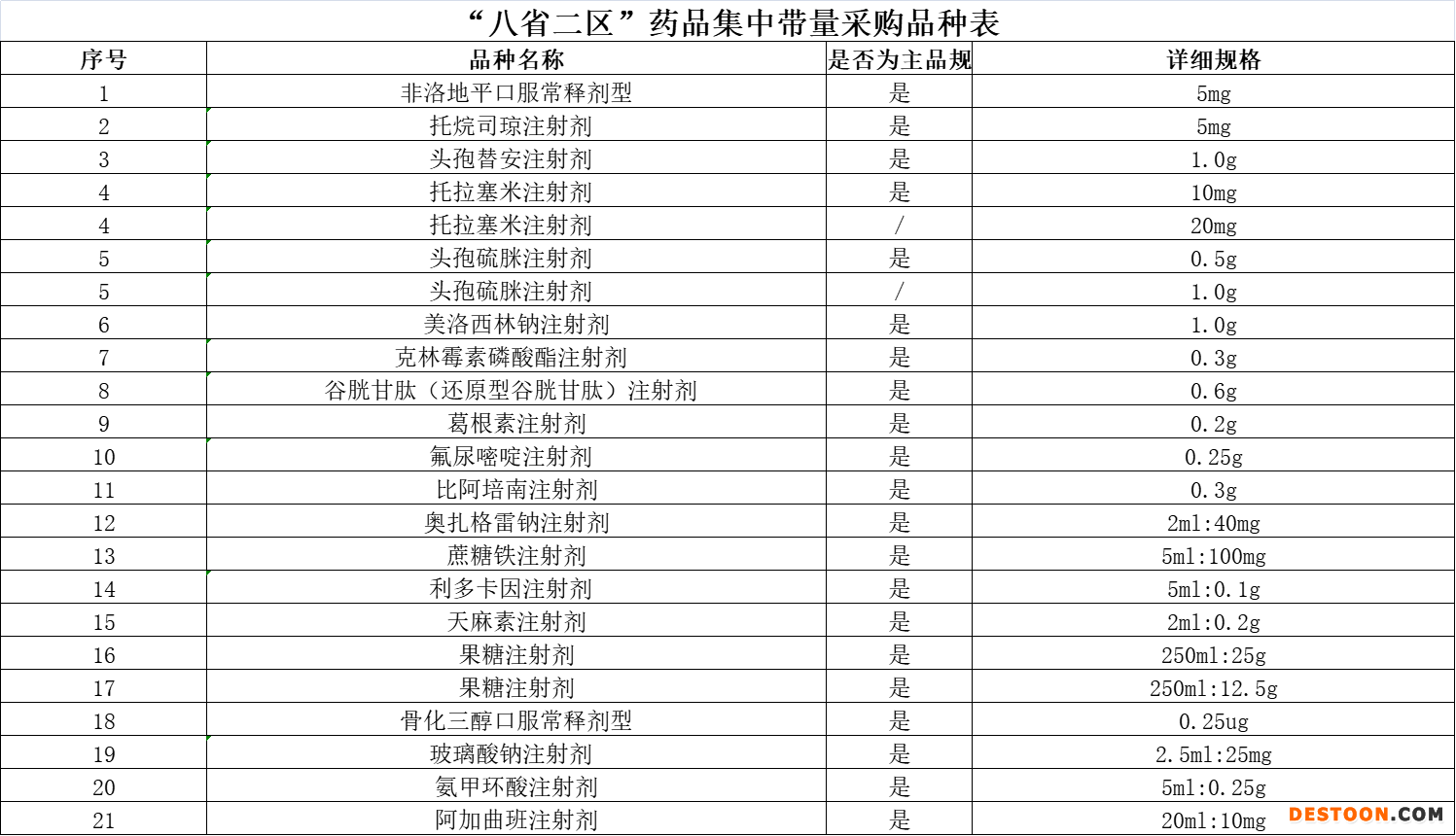 其中涉及21個(gè)大品種,包括非洛地平口服常釋劑型、托烷司瓊注射劑、頭孢替安注射劑等,所有品種中注射劑高達(dá)19個(gè),占比本次帶量采購(gòu)藥品的90%。