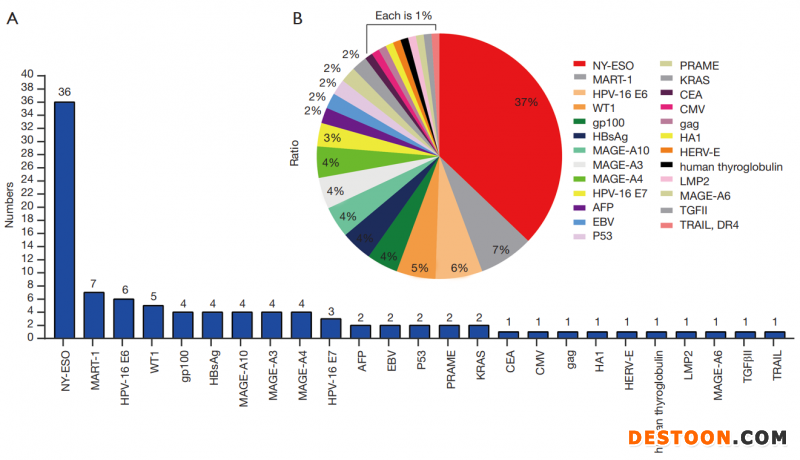 在其他腫瘤如肝癌、肺癌、間皮瘤、尿路上皮癌、食管癌、多發(fā)性骨髓瘤等腫瘤治療中,TCR-T細胞免疫治療也正在用于臨床研究。
